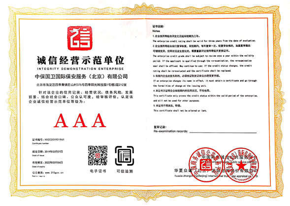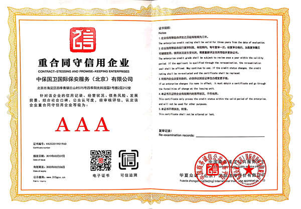 中保國衛(wèi)國際保安服務(wù)(北京)有限公司,屬中保國衛(wèi)集團(tuán)旗下子公司。能全方位的為大型客戶提供優(yōu)質(zhì)的安保、押運服務(wù),是集人防和技防于一體的新型正規(guī)化綜合安保押運服務(wù)企業(yè),提供人防、物防、技防、聯(lián)網(wǎng)報*、非武裝押運等安防相關(guān)的一站式服務(wù)。